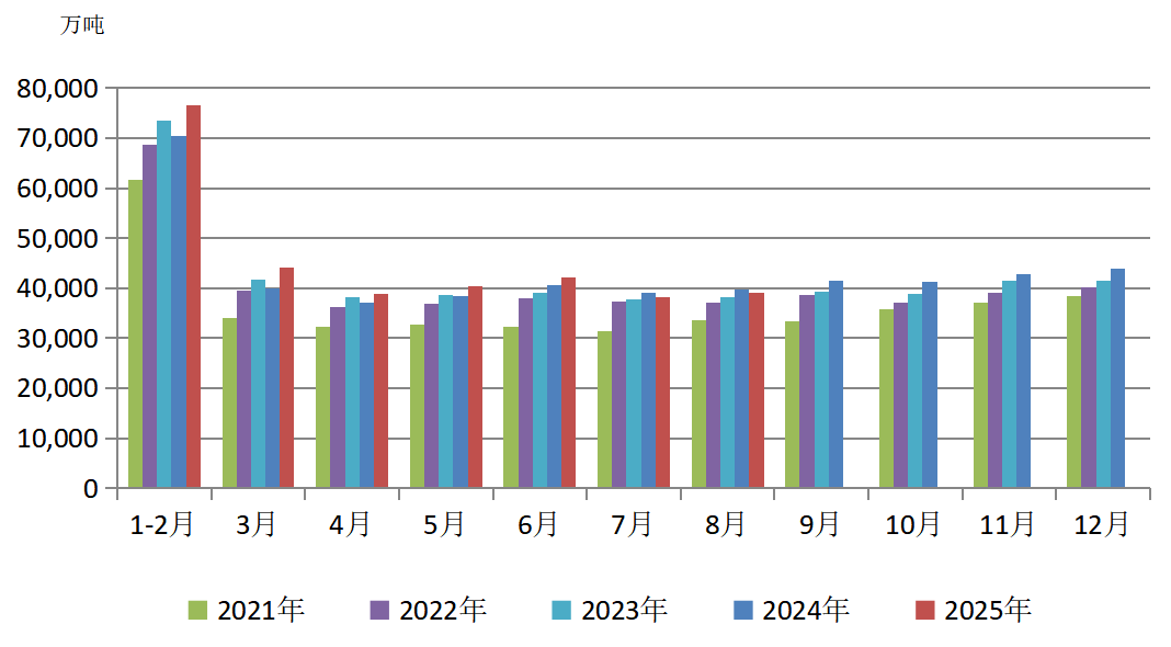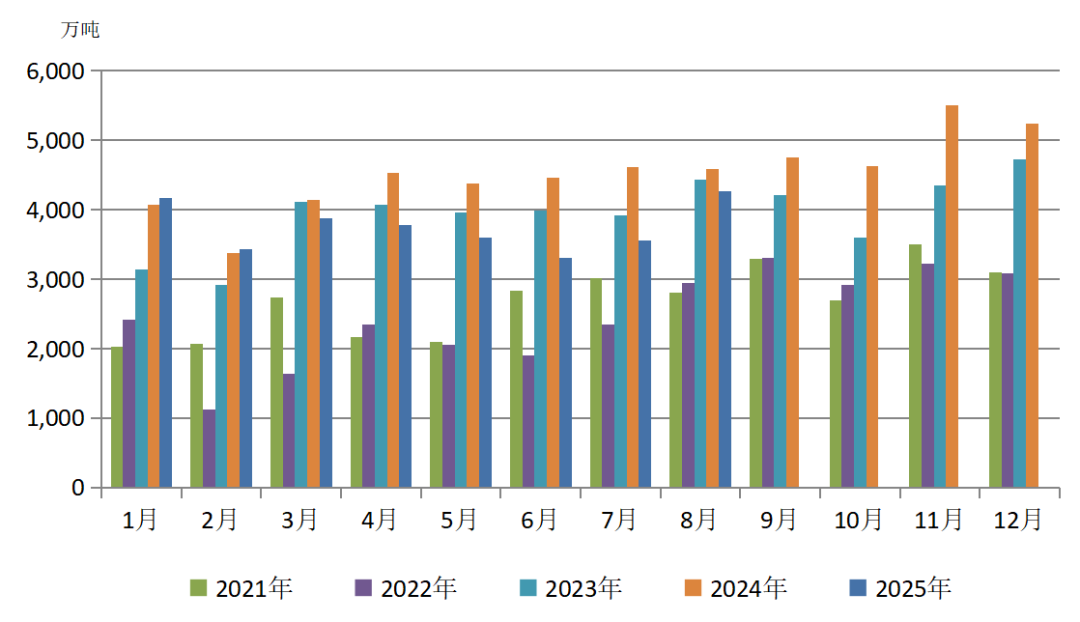 图3 2021—2025年煤炭月度进口量