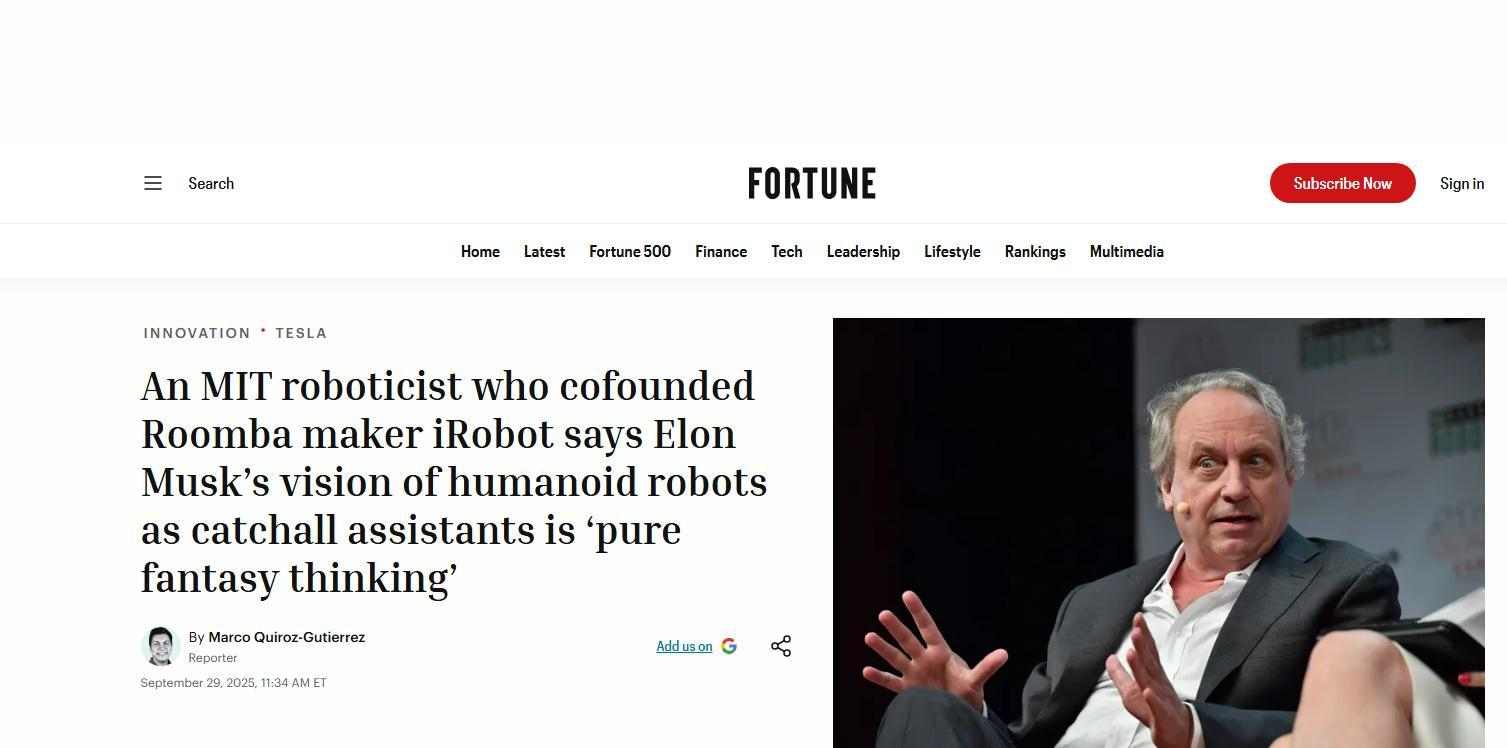 就在马斯克高呼人形机器人是“无限印钞机”、初创公司Figure AI狂揽20亿融资的狂热时刻,作为让扫地机器人真正走进千家万户的功勋人物,布鲁克斯宣称“人形机器人是一个注定会破裂的泡沫。”