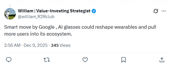 科技博主/分析师@william_R2Rclub认为,谷歌这次重返AI眼镜市场或将重塑可穿戴设备格局,并吸引更多用户加入其生态系统。