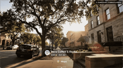 ——地图导航:低头有惊喜。 这可能是最打动路痴的功能。当用户佩戴显示版眼镜使用谷歌地图时,视野前方会出现箭头指引方向。但这还不是全部——当用户稍稍低头时,眼镜还会展示当前位置的俯瞰地图和指南针。这比拿着手机一边看屏幕一边找路要直观得多,完全解放了双手。