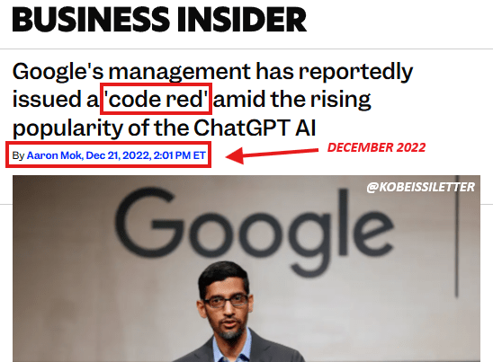 这个词在AI圈有着特殊的历史意义。三年前,谷歌曾被ChatGPT的横空出世打懵,启动了他们自己的“红色警报”。
