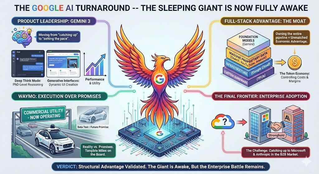 谷歌用Gemini 3、TPU、强大的全栈能力,以及浴火重生的战略,向全世界证明了它的实力!它不仅仅是回到了赛场,更是带着“满腔热血”和“王牌底牌”,要在这个“AI的星辰大海”中,“C位出道”!
