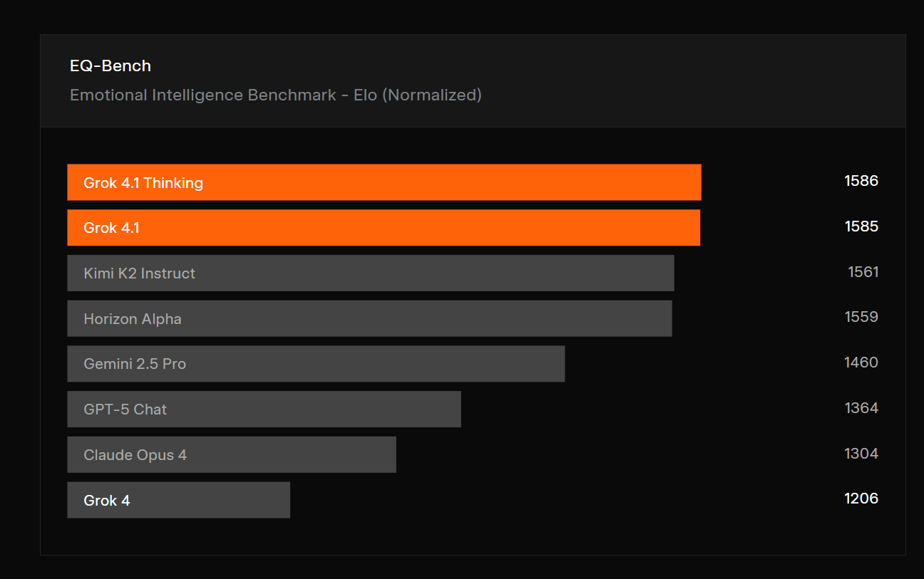 Grok 4.1在盲测的人类偏好评估中树立了新的行业标准。