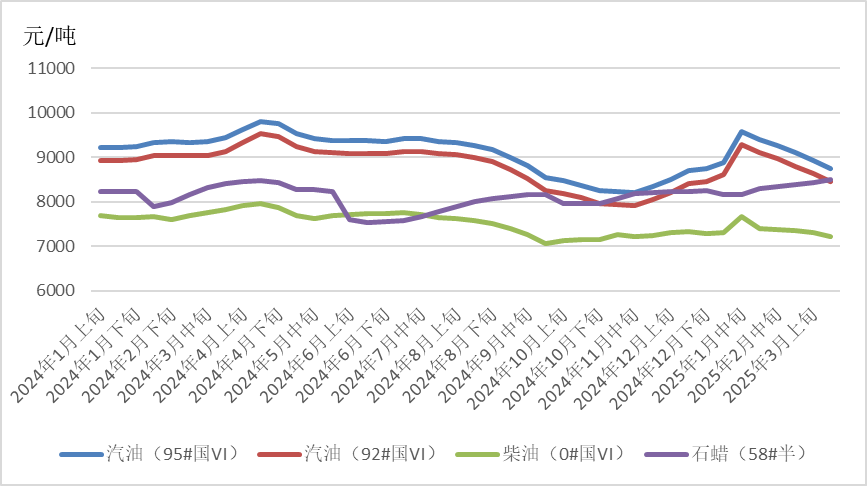 截至3月27日,WTI、布伦特原油期货价格分别收于69.92美元/桶、74.03美元/桶,月环比分别下降0.61%、0.01%,相较于2024年同期的81.35美元/桶、86.09美元/桶,分别下降14.05%、14.01%。