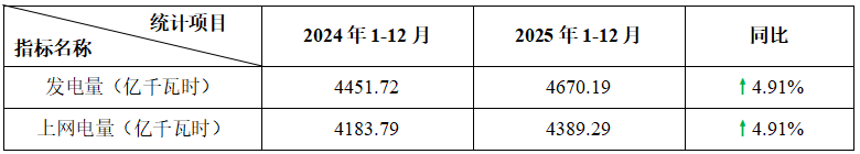 表2:2025年1-12月运行核电机组电力生产指标统计表