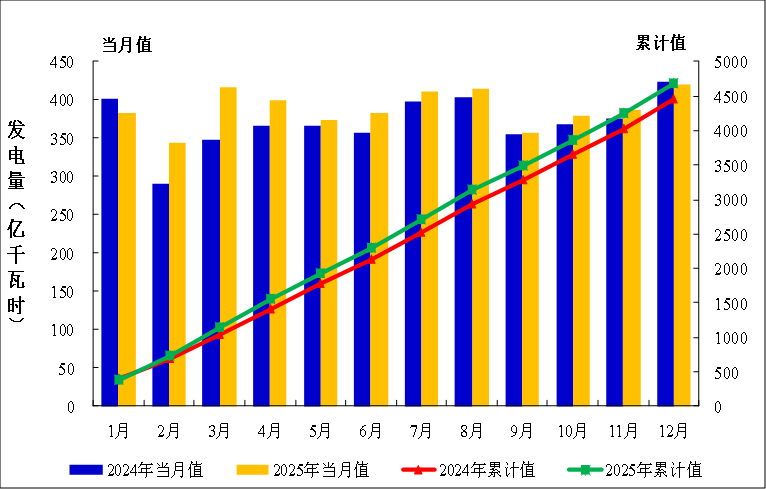 图1:2025年1-12月全国发电量统计分布