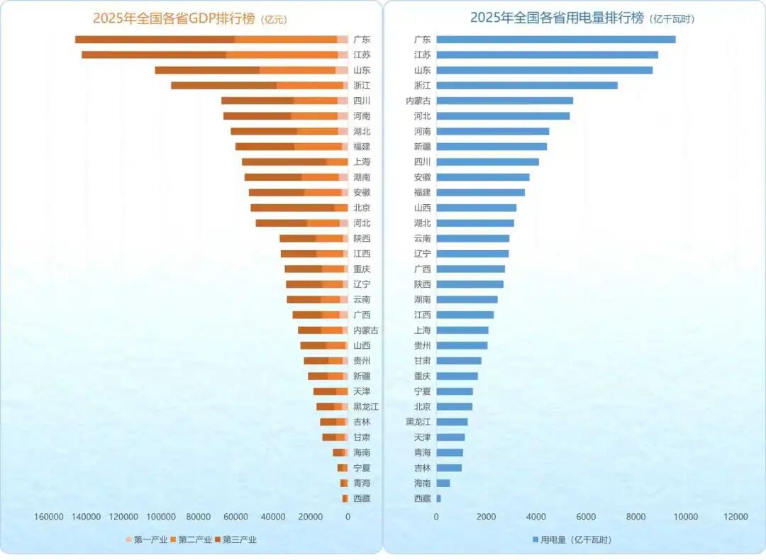 各省区经济电力增速排行,GDP与用电量双突破谁领跑?
