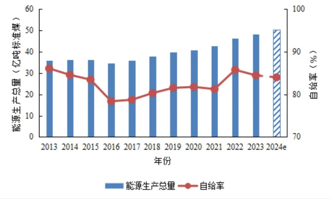 图3 我国一次能源生产总量及自给率