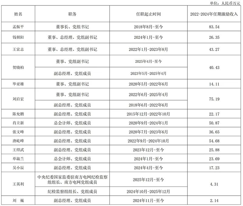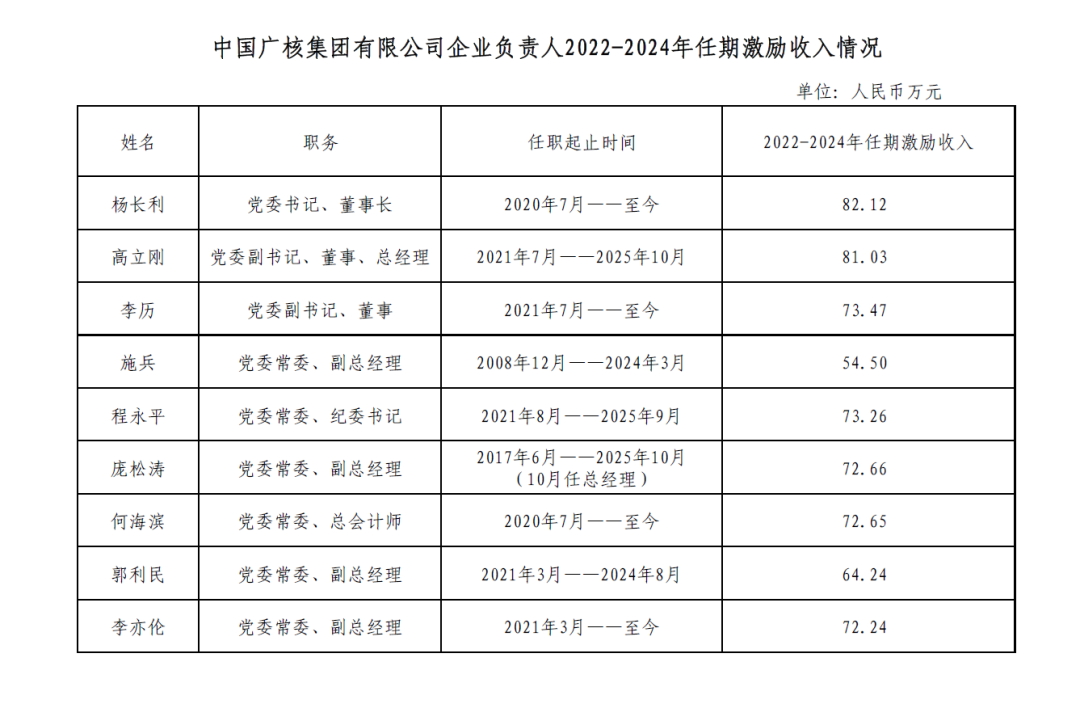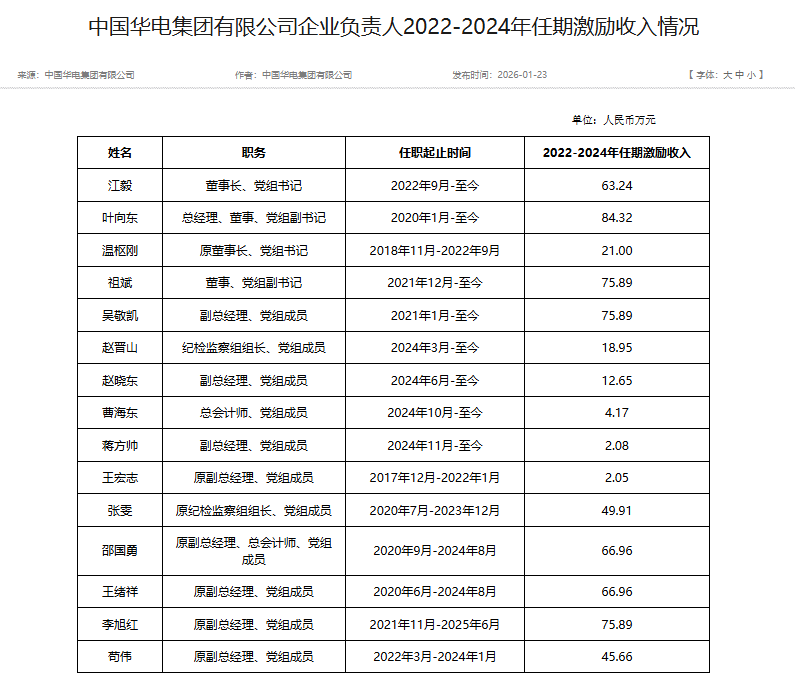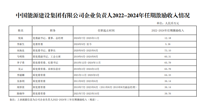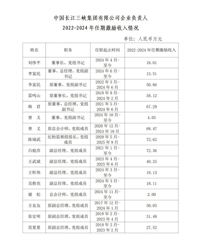 本次公布的有:国家电网、南方电网、华能、华电、大唐、国家电投、三峡、国能、中节能、中广核、中电建、中能建等央企负责人2022-2024年任期激励收入。