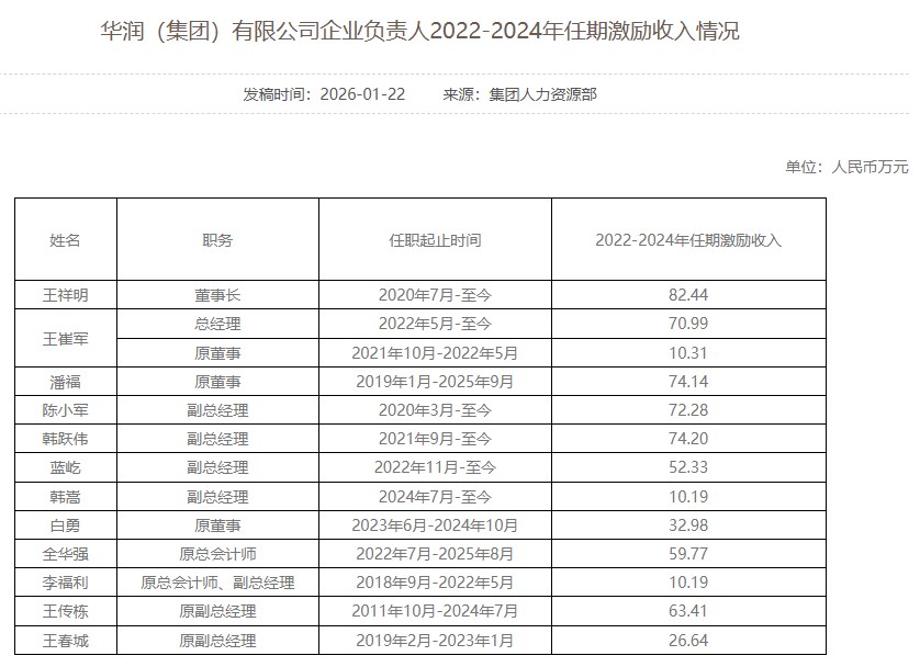国务院国资委官网2月3日消息,按照中央企业负责人薪酬管理有关规定,中央企业负责人薪酬总收入由年度薪酬和任期激励收入构成,其中,任期激励收入每三年发放一次。