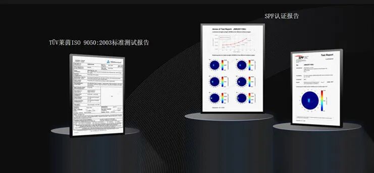 通过TÜV莱茵、瑞士SPF权威认证,正在进行国家光伏质检中心(CPVT)测试认证,将成为国内首款获得三重权威认证的光伏防眩光产品,代表着行业最全认证、最高标准的技术高度。