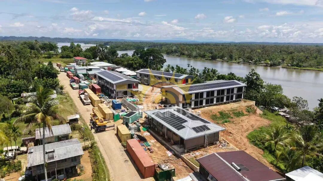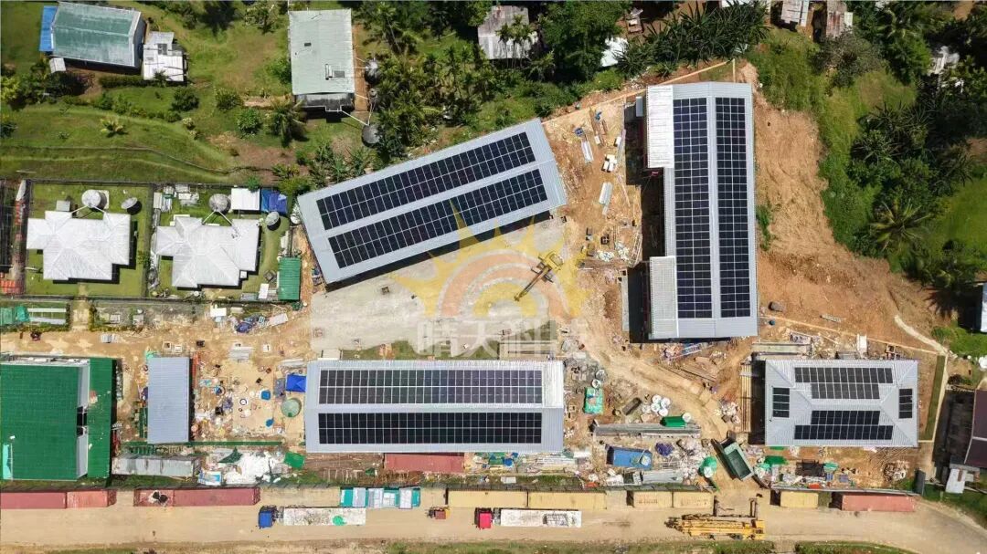 该项目坐落于巴新基科里地区,光伏装机容量达240KWp,储能装机容量960Kwh,投运后年均发电量约40万Kwh,每年可减少碳排放389吨,实现了经济效益与生态效益的双重提升。