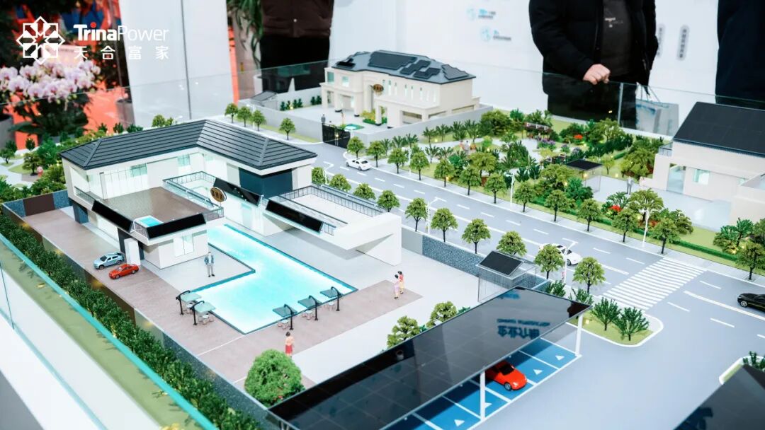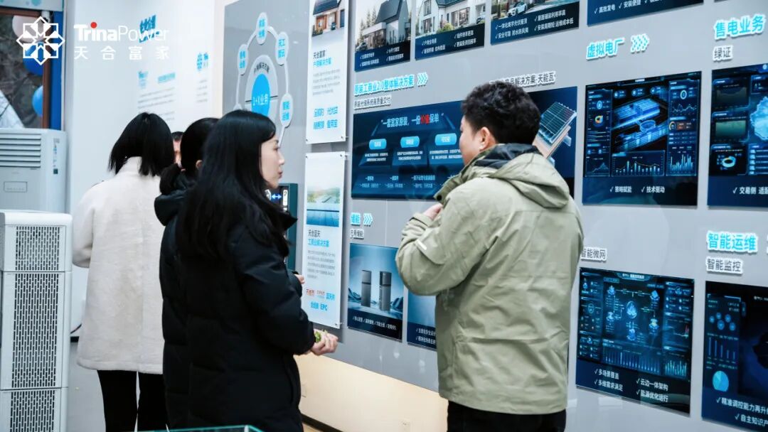 作为集品牌展示、场景体验与专业咨询于一体的综合智慧能源体验中心,旗舰展厅以系统化、场景化的布局,完整呈现了天合富家“1+X”的业务生态体系。现场通过实景沙盘、产品阵列与交互演示,用户可直观感受从家庭到工厂、从发电到管理的零碳能源全景。