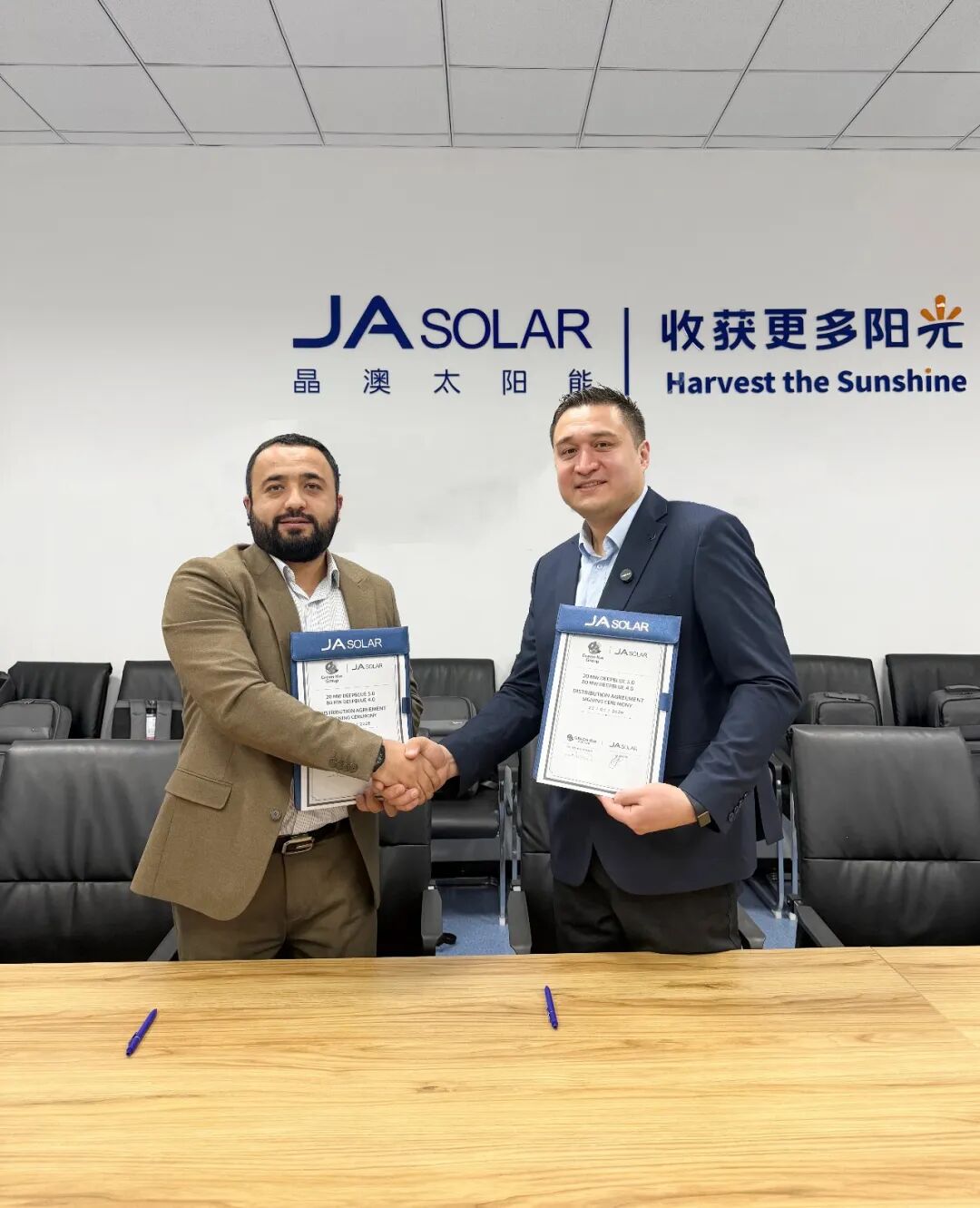 近日,晶澳科技与乌兹别克斯坦领先可再生能源企业Green-KW Group达成里程碑式合作,双方正式签署总规模达100MW的光伏组件供货协议,其中包括20MW DeepBlue 5.0高效组件——这促成了乌兹别克斯坦首个新一代超高功率组件项目,标志着中亚地区光伏能源发展正式迈入高效能、高技术引领的全新篇章。
