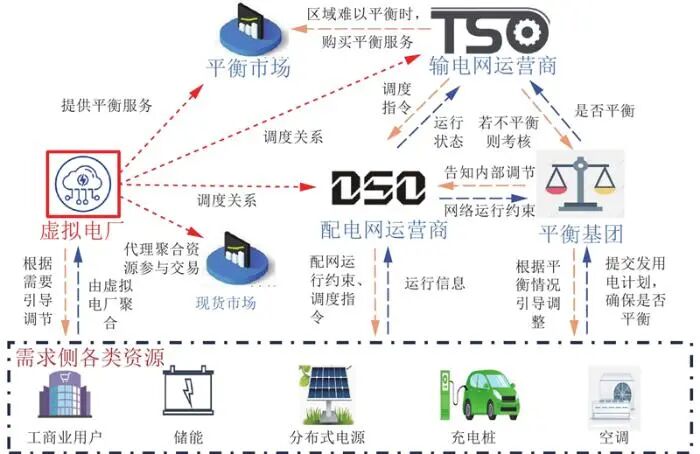 3.2 虚拟电厂与电网公司、平衡基团等关联主体的关系
