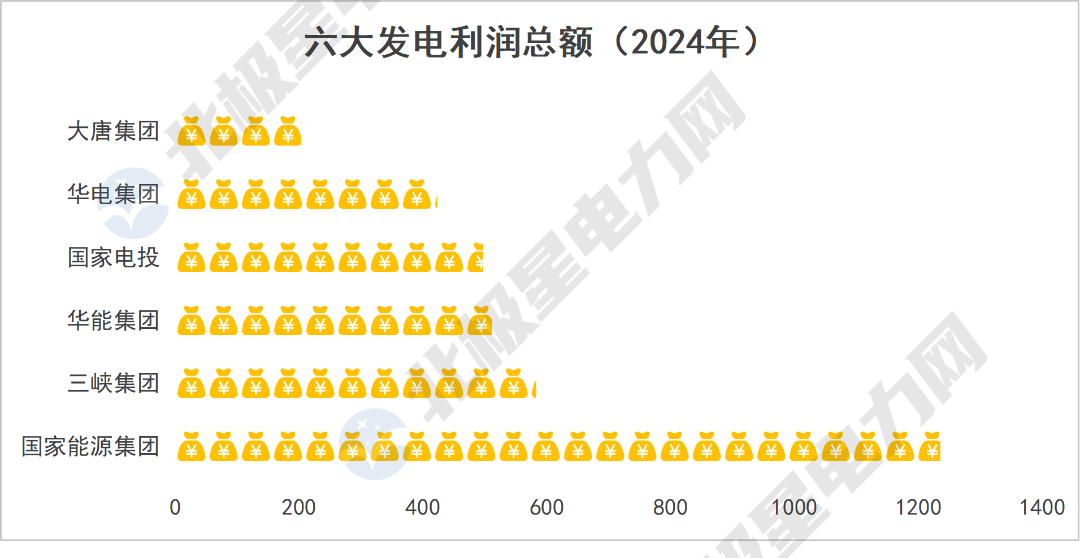 利润总额方面,三峡集团的6座大型水电站带来源源不断的现金流,也被业内称为“印钞机”。借此,三峡集团的利润总额常年(2020年-2024年)排在六大发电第2位,仅次于国家能源集团。
