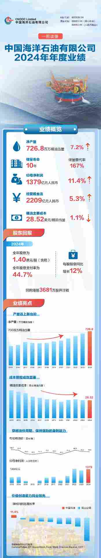 3月27日,中国海洋石油有限公司公布了2024年年度业绩。
