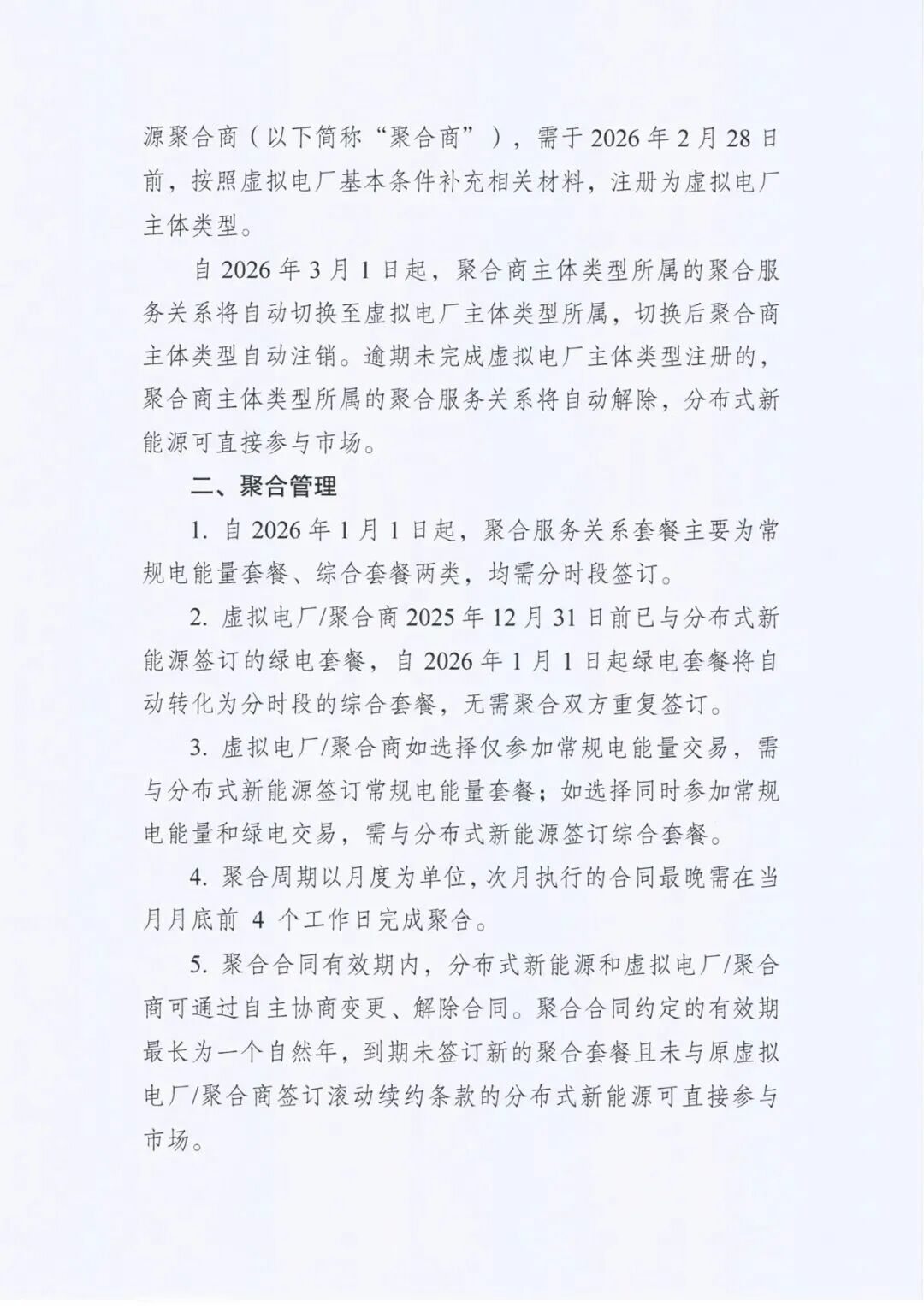自2026年1月1日起,聚合服务关系套餐主要为常规电能量套餐、综合套餐两类,均需分时段签订。