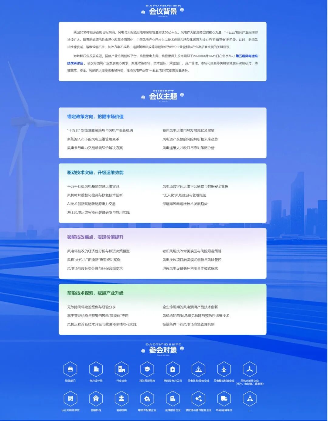 为破解行业发展难题,搭建产业协同创新平台,北极星电力网、北极星风力发电网联合中国电力设备管理协会新能源运维专委会,拟于2026年3月10-11日在北京举办第五届风电运维技改研讨会。