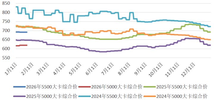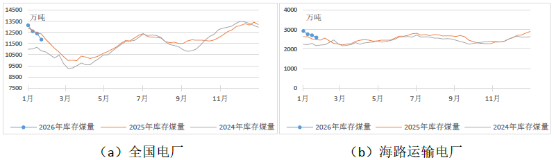 月末虽仍有寒潮,但强度已弱于前期,今冬日耗峰值基本过去,电厂库存虽有所消耗但整体仍处高位,补库意愿持续低迷,加之临近春节工业需求逐步减弱,市场采购需求整体疲软。极端天气影响结束后,煤矿生产与运输的阶段性约束解除,尽管部分民营煤矿提前放假及内蒙古安全事故对局部供应形成扰动,但供需整体偏宽松的格局未变。同时,贸易商在年前普遍以出货回款为主,采购节奏放缓,市场供需关系变化的可能性进一步减少。而进口煤方面,预计市场将在供应收缩预期与需求现实压制的矛盾中,短期内维持窄幅震荡格局。综合判断,当前产地与港口价格同步回落,但市场交易活跃度未见好转,在需求逐步走弱、供应相对宽松的背景下,价格仍面临下行压力,预计短期内市场将维持僵持偏弱态势。
