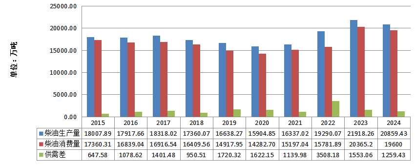 图3-6 2015—2024年柴油供需情况