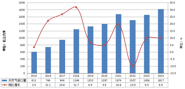 国家发展改革委数据显示,2024年,全国天然气表观消费量4260.5亿立方米,同比增长8%。随着稳经济政策及接续措施加快推进并落地生效,国内经济持续呈现复苏向好态势。各个领域的用气需求皆展现出积极向好趋势,有力带动了天然气需求稳定增长。其中,城市燃气需求持续增长,车用LNG是最亮眼要素,燃气管线铺设范围持续拓展,2024年新增约2000万用气人口,带来20亿立方米以上的城乡居民生活用气量增长。然而,与其他天然气消费场景相比,发电用气量波动性较大,燃气机组利用率持续偏低,新机组投运是发电用气量增长的主要原因。工业生产增长及替代作用增强,推动工业用气需求多点释放;化工用气需求基本平稳。
