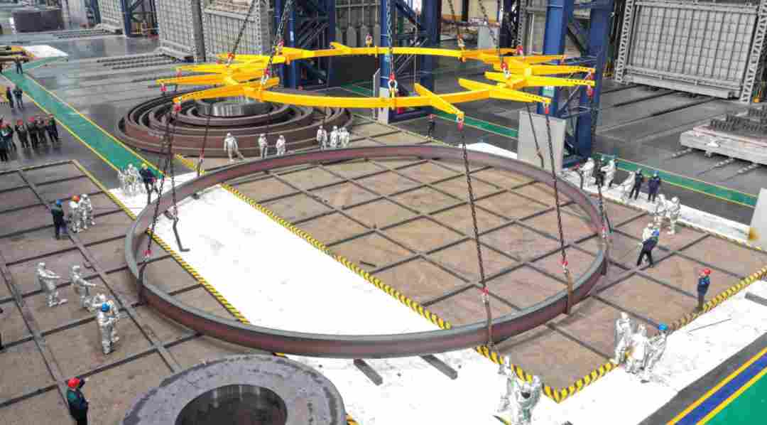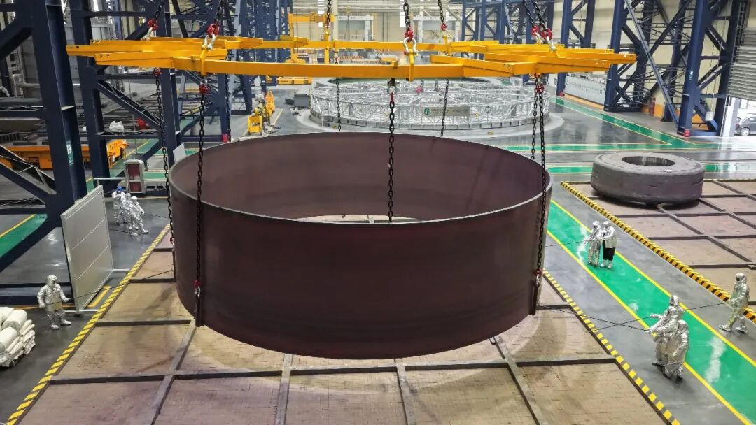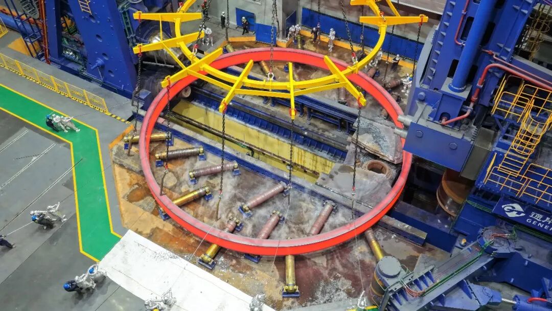 超大直径一体成形无缝轧环,该产品由伊莱特与天锻公司、沃茨公司共同研发的22米全球最大轧环轧筒机轧制成形,其中一件环件母材重143吨、外径21.029米;另一件为某四代核电工程等比例验证件,母材重量280吨、外径18.63米,可为核电项目安全运行筑牢硬件基础。