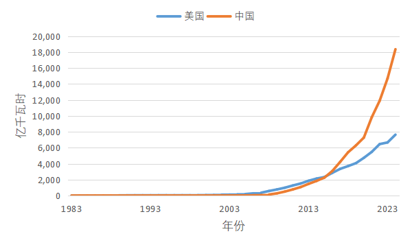 图1 1983—2024年中美风光电发电量