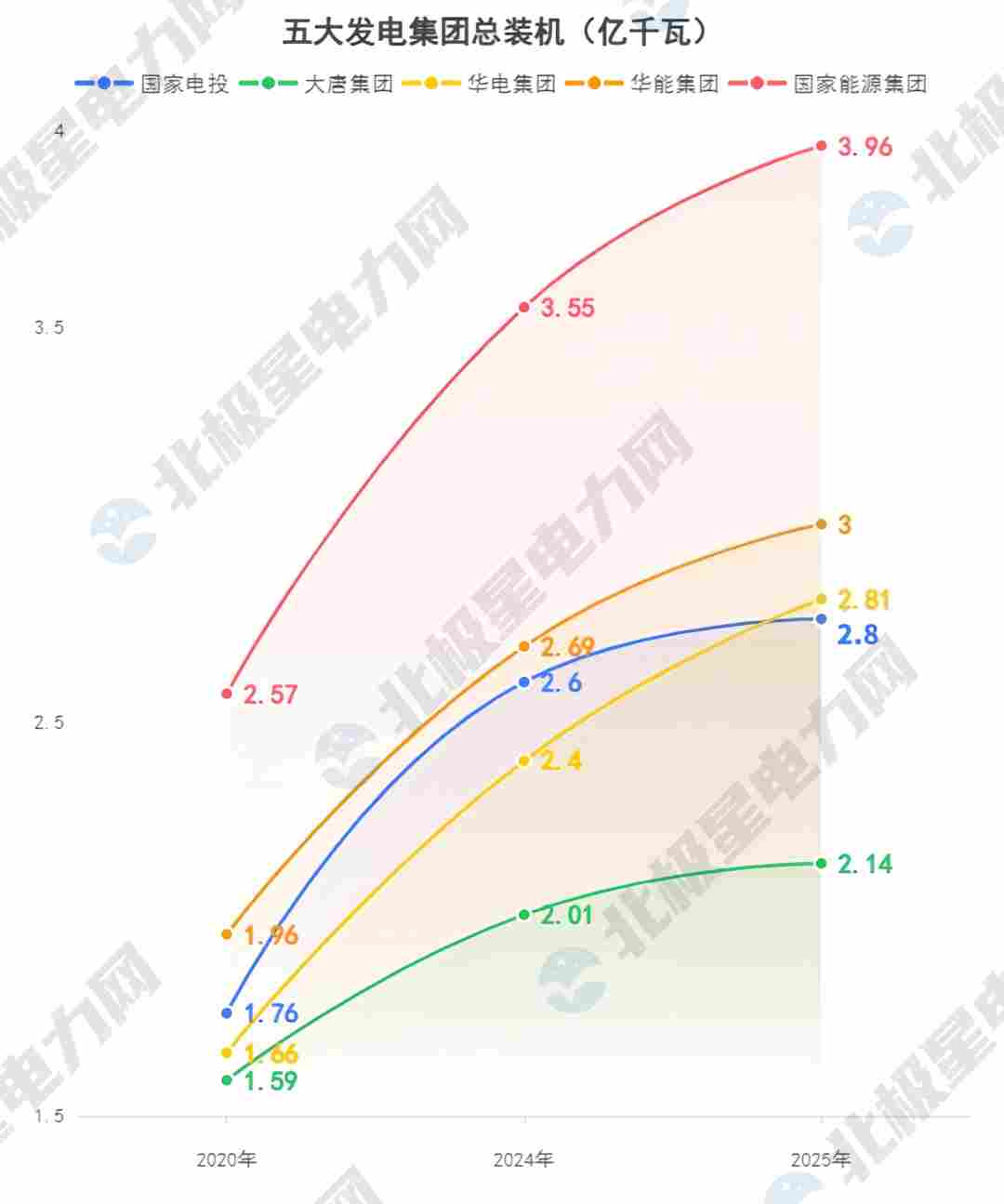 华能与国家电投的装机规模重新拉开差距;华电集团装机“狂飙”,总装机已能够比肩国家电投。