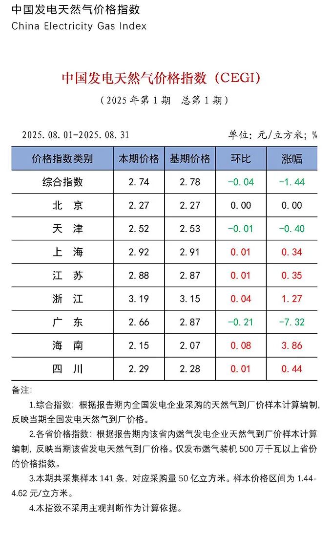 中国发电天然气价格指数(CEGI)第1期