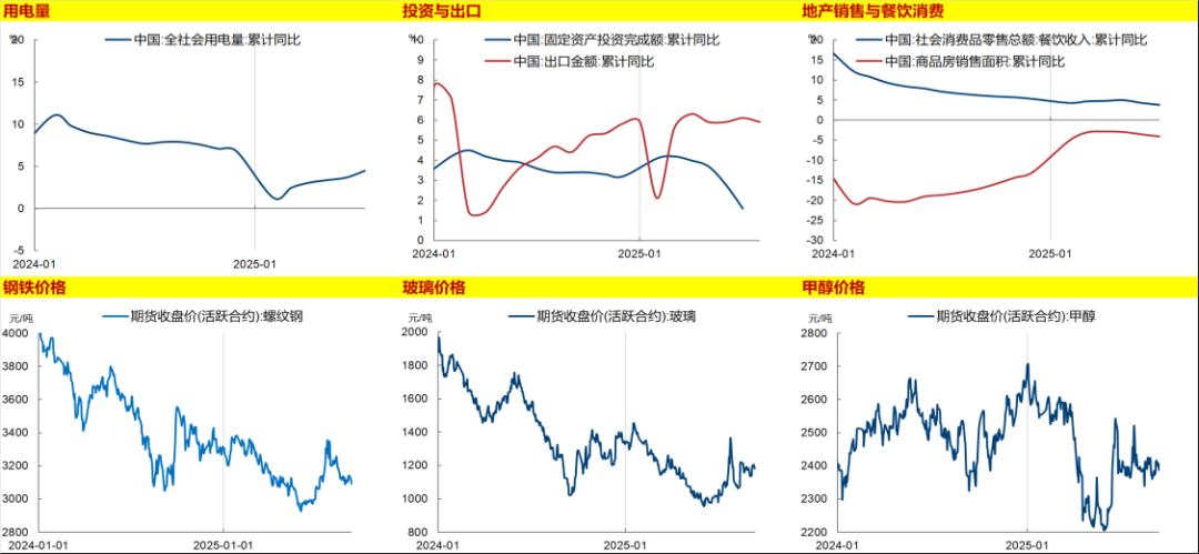 2023年下半年以来央行持续降准降息,推进银行间货币宽松与利率下行——2025年4月央行继续降息10BP,7天逆回购利率降至1.4%。2025年财政支出比较积极——2025年1-7月公共财政加政府性基金支出21.5万亿,累计同比9.3%。2025年上半年工业企业产成品库存和利润尚未有见底企稳迹象,投资消费与出口都依然存在下行压力(图2)。