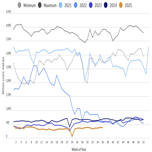 2025年8月以来,天然气逐渐进入冬季补库周期。海外供应扰动,增加了亚欧补库不确定性。