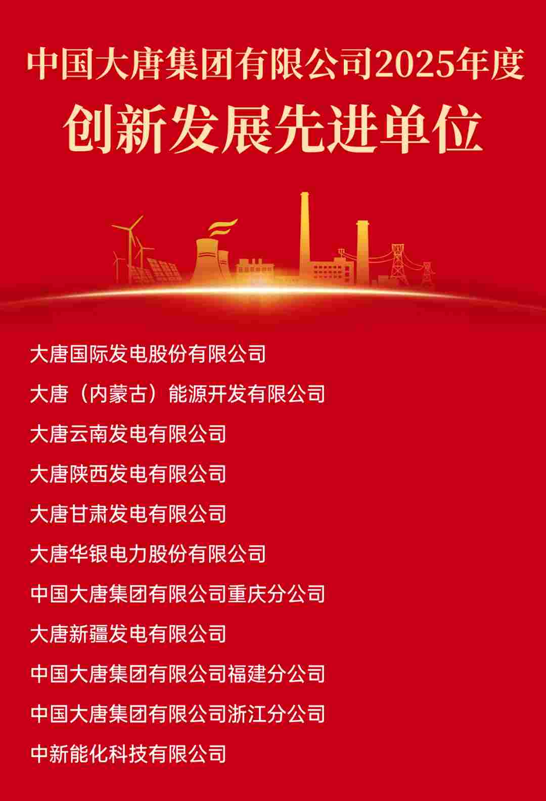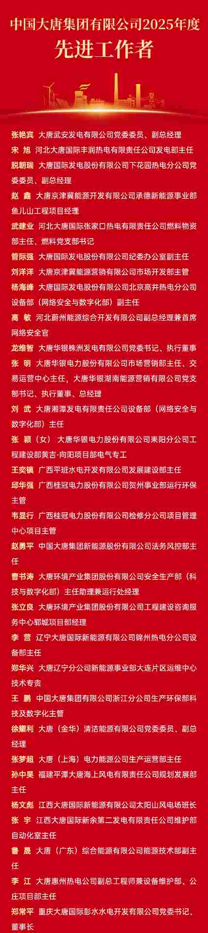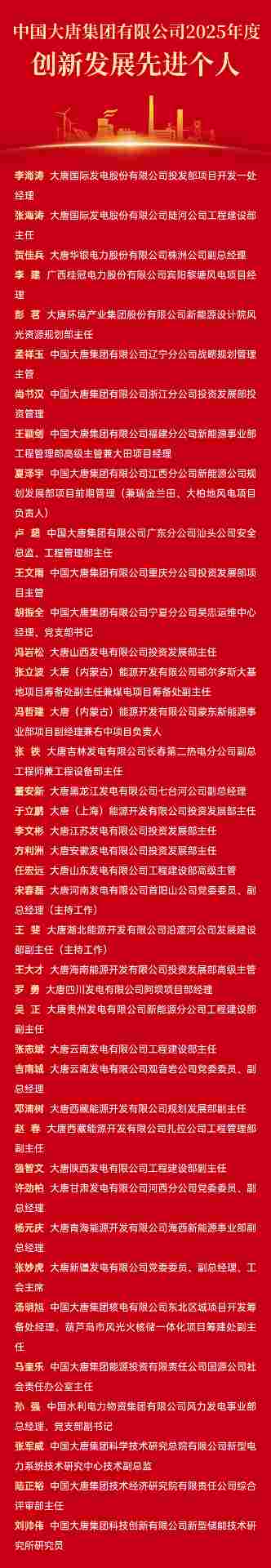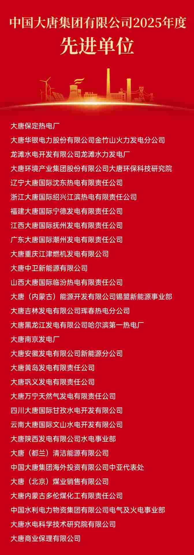 中国大唐2025年度光荣榜公布