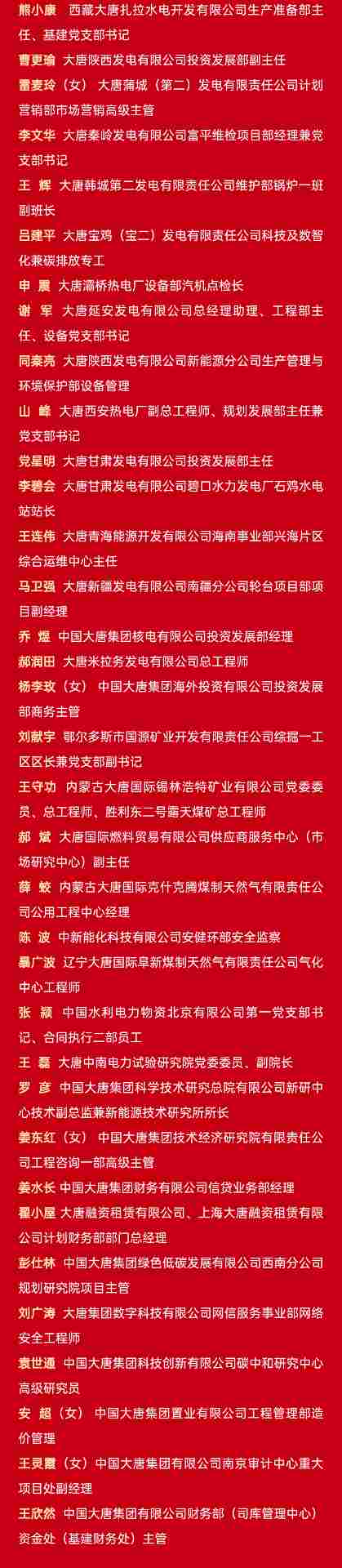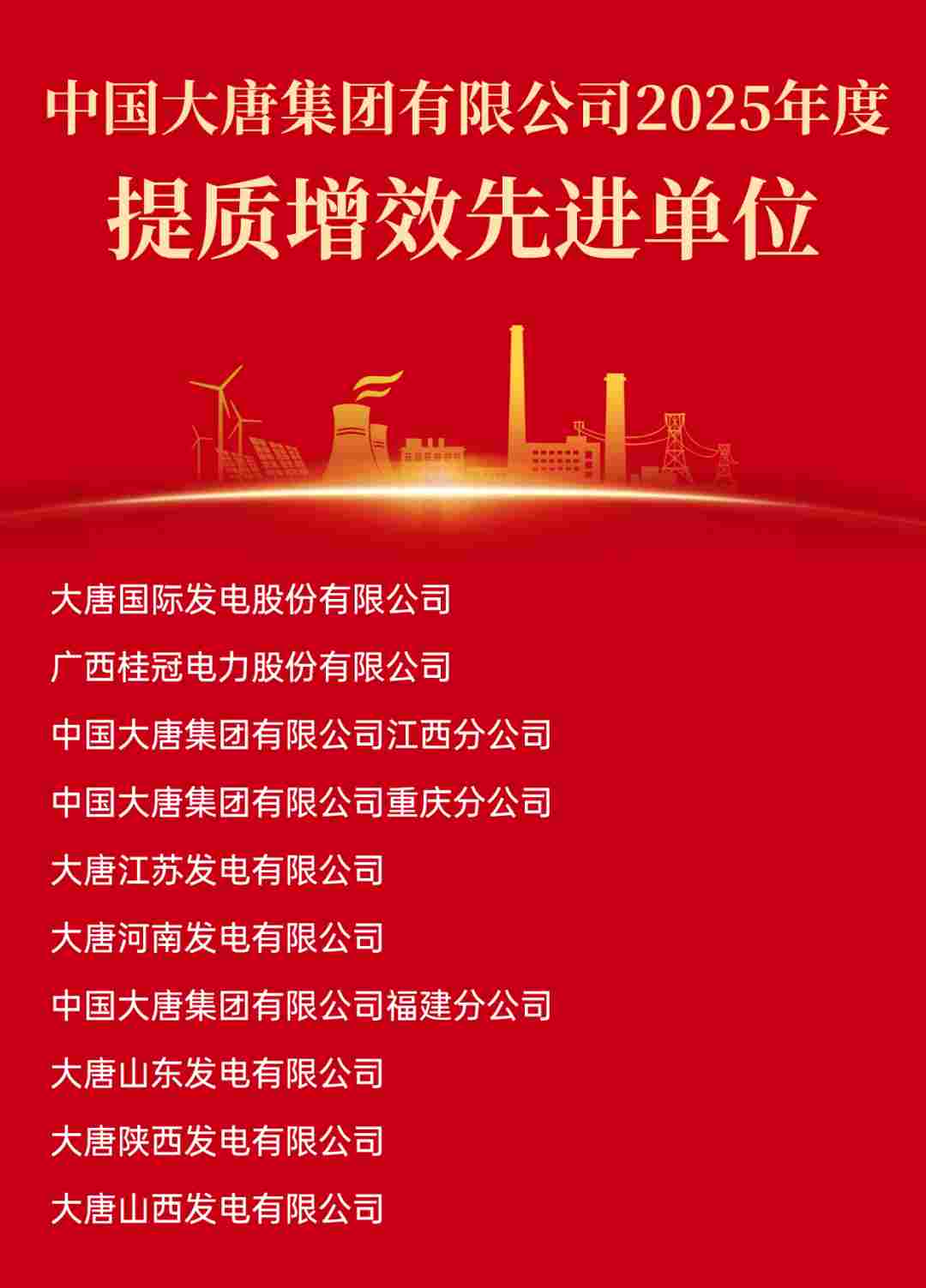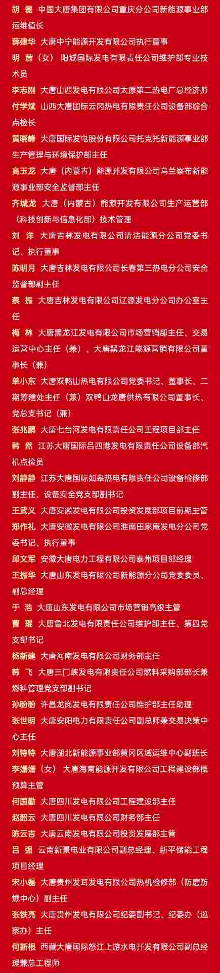 中国大唐2025年度光荣榜公布