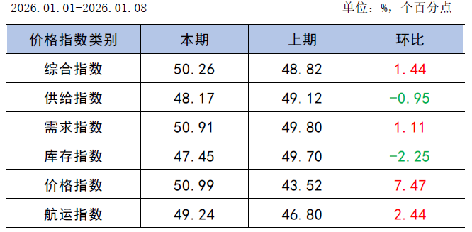 国内航运市场方面,本周整体呈现“弱势下行”的格局。在运力方面,“船多货少”的局面尚未发生根本改变,市场运力供应保持宽松。国际航运市场方面,本周整体呈现“假期后温和复苏,但基础不牢”的特征。圣诞及新年假期结束后,市场交易活动逐步恢复,但整体需求支撑不足,各船型表现分化,运价在低位波动盘整。其中,以运输煤炭为主的巴拿马型船市场因货盘的小量释放而有所回暖;灵便型船市场整体可用运力依旧偏多,运价继续承压阴跌;而以运输铁矿石为主的海岬型船市场则因需求疲软继续探底。短期内,市场未能形成统一方向,整体运价延续弱势运行。