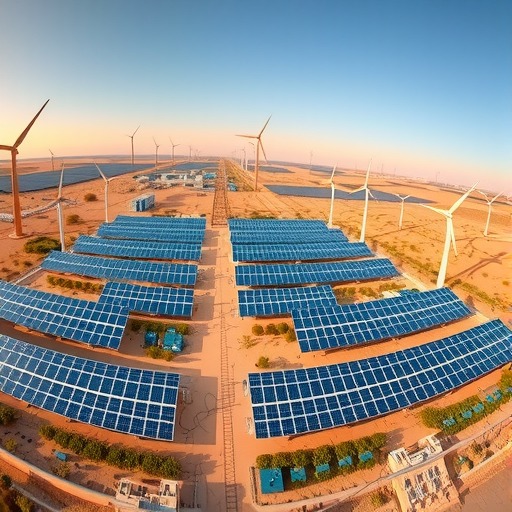 天山南北,绿洲与戈壁交响;皑皑雪峰下,风机矩阵迎风展翼,汲取苍穹之力;无垠戈壁上,光伏蓝海静默铺陈,汇纳日曜之光……这是新疆戈壁滩上中国华电的“大漠建设图”。建设者们穿梭在冰雪覆盖的戈壁腹地,指挥风机吊装;奋战在炎热干旱的古尔班通古特沙漠边缘,安装储能电池舱;拼搏在巴里坤“二百四十里黑戈壁”,建成我国首个“沙戈荒”新能源外送基地——新疆天山北麓戈壁能源基地。
