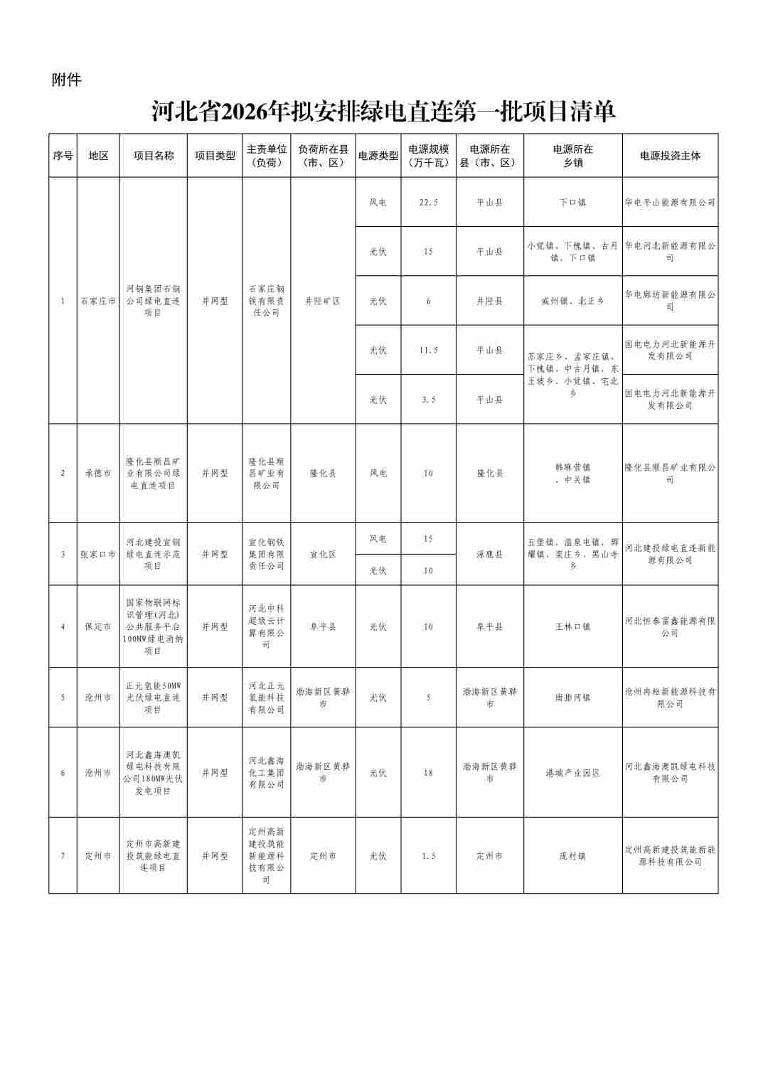 附件:河北省2026年拟安排绿电直连第一批项目清单