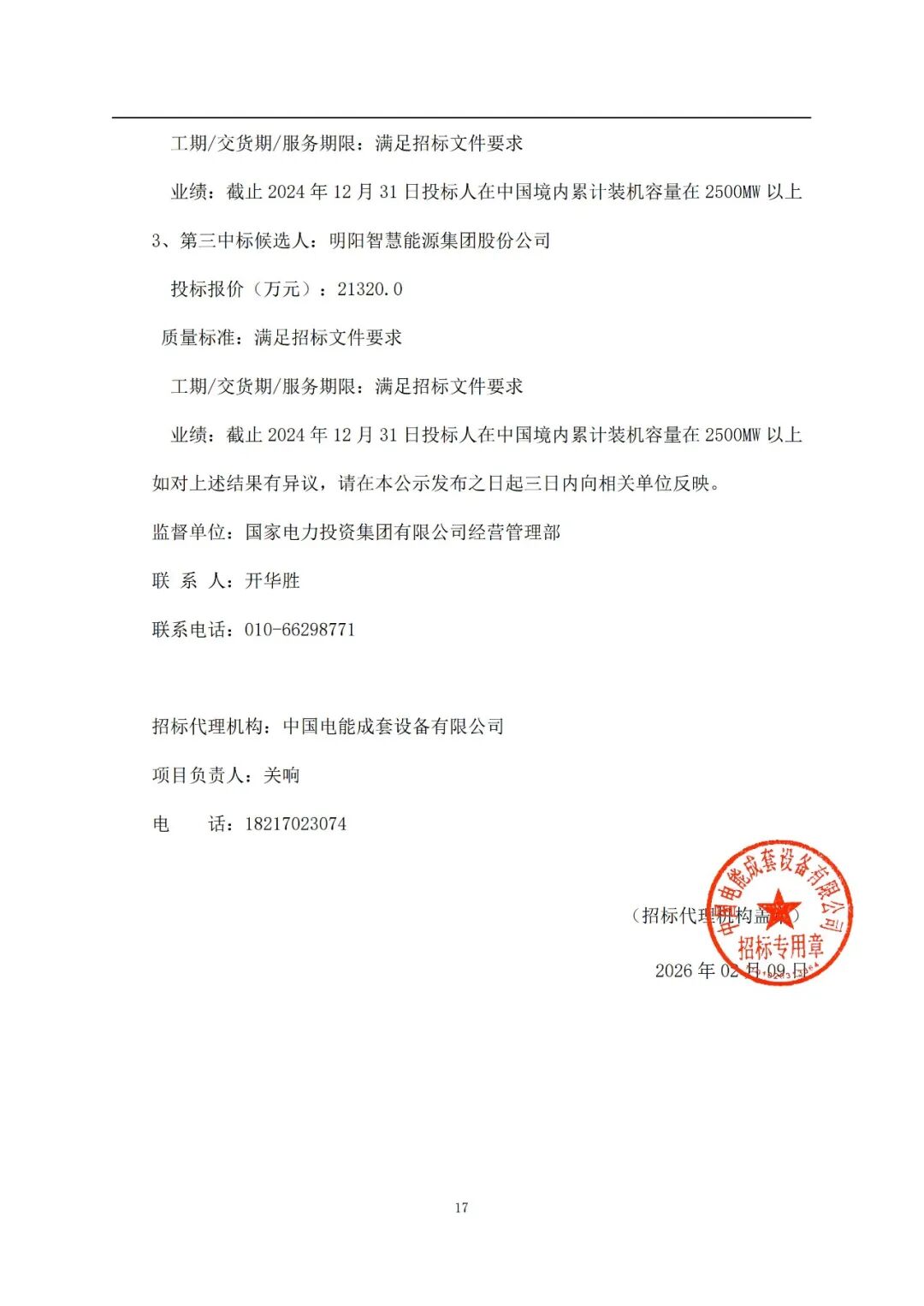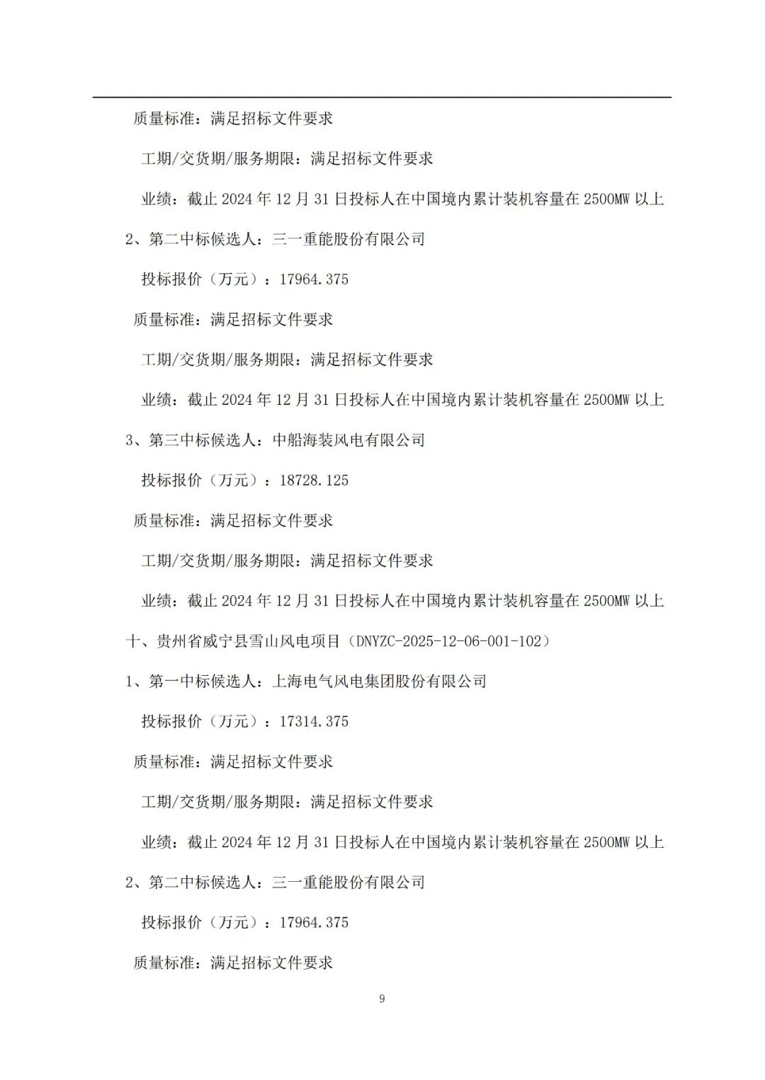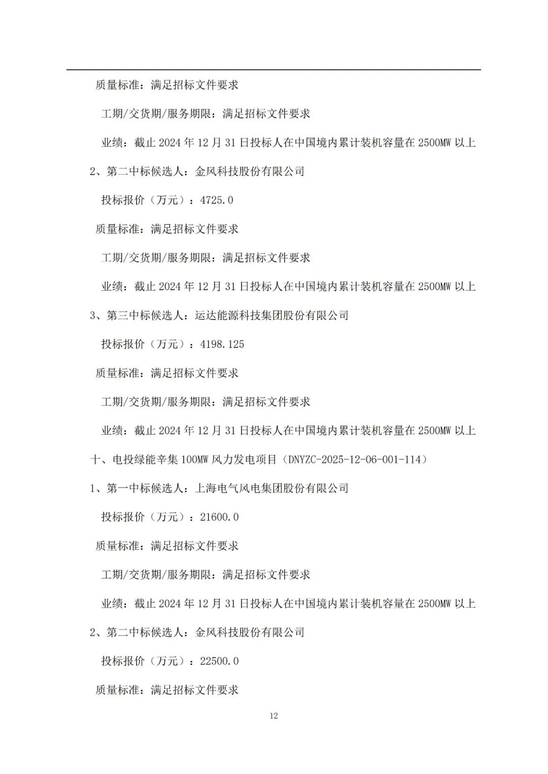 2月9日,国家电力投资集团有限公司二〇二五年度第96批集中招标(第四批风力发电机组规模化采购)招标中标候选人公示,本次开标项目总装机规模共计2752.5MW。