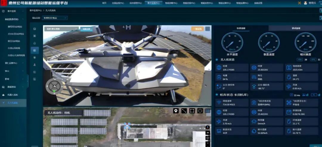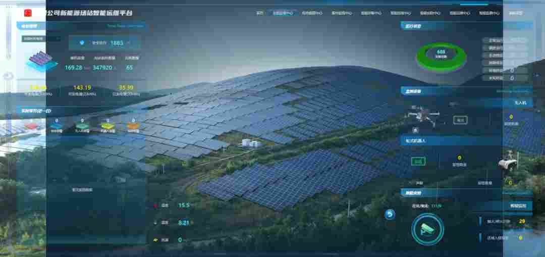 无人巡检,全域覆盖:部署巡检机器人、无人机及固定式智能相机,实现升压站、光伏区、电缆沟等区域的全自动、无死角巡检;无人机实现指点飞行,在异常情况下能第一时间到达指定位置巡视,拓展了应用场景。