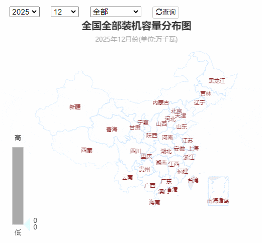 2025年,全国发电装机容量389134万千瓦,同比增长16.1%。全国发电装机容量分布图如下所示。