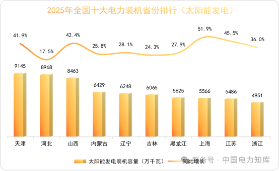 截至2025年底,全国十大太阳能发电装机省份分别是:山东9485万千瓦、新疆9145万千瓦、江苏8968万千瓦、河北8463万千瓦、浙江6429万千瓦、广东6248万千瓦、内蒙古6065万千瓦、安徽5625万千瓦、河南5566万千瓦、云南5486万千瓦。