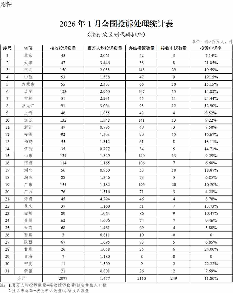 根据《12398能源监管热线投诉处理办法》和《12398能源监管热线举报处理办法》规定,现将2026年1月12398能源监管热线(以下简称“热线”)投诉举报处理情况通报如下。
