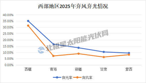 从区域分布来看,消纳压力主要集中在西北、西南等新能源富集地区,2025年全年弃光率10%以上的地区达4个,分别是西藏(35.1%)、青海(16.6%)、新疆(13.7%)、甘肃(10.4%),其中西藏弃光率高达35.1%,12月单月弃光率更是达到44.4%;风电消纳方面,西藏弃风率达31.4%,为全国最高,辽宁、吉林、蒙西等地区也存在不同程度的弃风现象。