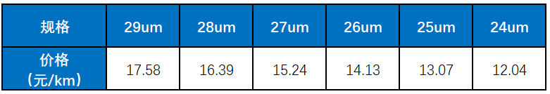 折算各规格母线对冲价格对照如下(在废钨丝金刚线100%回收的情况下):