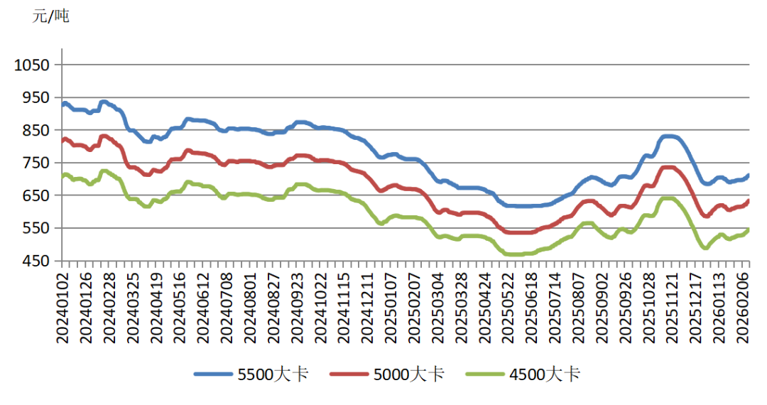 2026年2月,印尼煤炭现货出口陷入停滞,对我国南方沿海电厂供应造成直接冲击。印尼是我国最大的煤炭进口来源国,其出口中断将导致我国南方地区(粤、桂、闽等省份)出现约1500万吨/月的供应缺口。且除中国外的亚太国家如韩国、印度、越南等对印尼煤亦存在一定需求。2026年2月首周,国内港口Q5500动力煤现货价格及国际纽卡斯尔动力煤指数均出现15%以上的脉冲式跳涨。春节期间,国际动力煤价格明显上涨,进口煤价格倒挂。截至2月26日,进口印尼3800大卡华南到岸价为508元/吨,较同品种内贸煤价格高32元/吨;进口澳洲5500大卡华南到岸价为791元/吨,较同品种内贸煤价格高24元/吨。