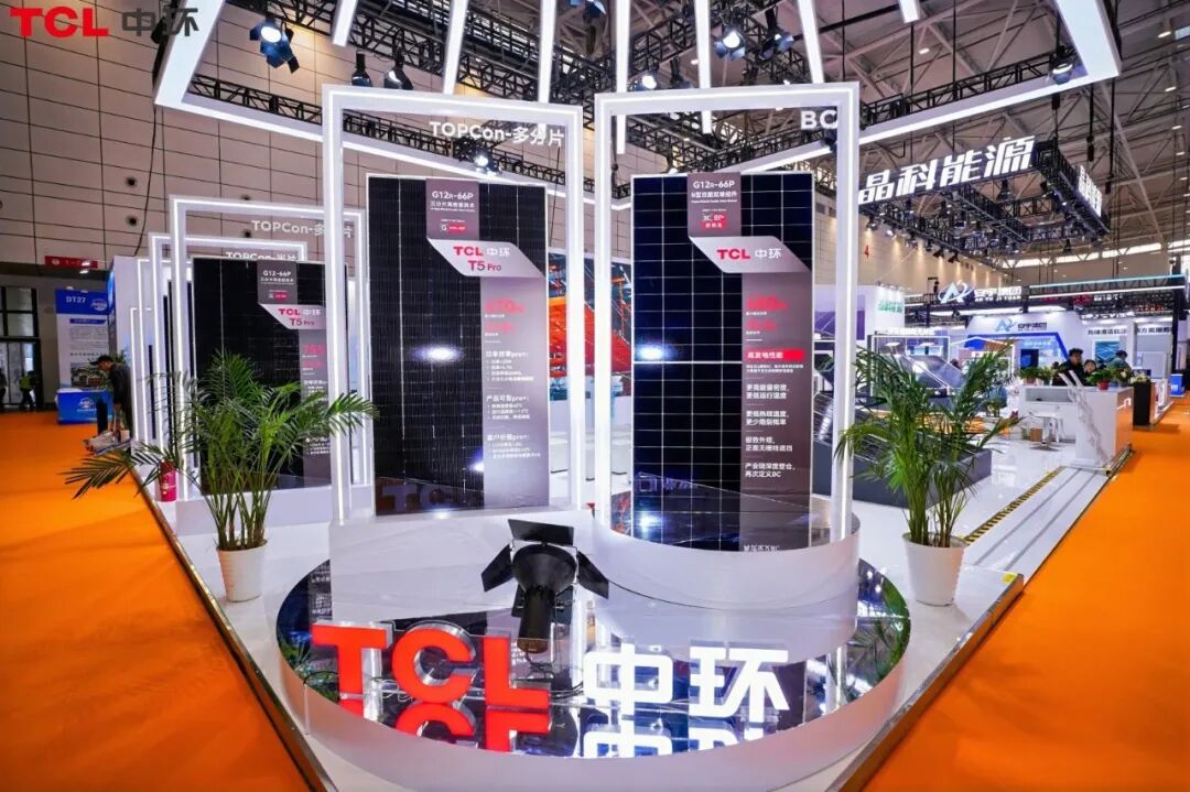 本次展会,TCL中环以 “双核驱动” 为核心,重磅展出多款基于TOPCon多分片、BC防积灰技术的旗舰光伏组件,从功率、效率、适配性等多维度展现品牌硬核技术实力,成为展会现场的 “技术打卡地”。