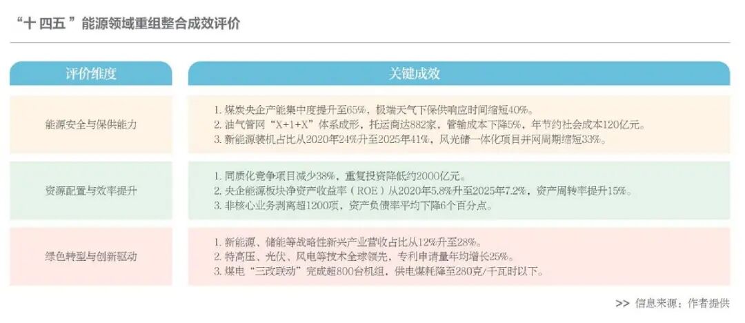 客观评价“十四五”时期能源领域的重组整合,需要建立多维度的评估框架。从量化指标看,重组后的企业在规模体量、市场集中度、产业链完整性等方面确实得到了显著提升。国家能源集团整合内部煤炭、电力、运输资产后,2025年煤炭产能达5.2亿吨,电力装机容量超5亿千瓦,成本较行业平均低12%,“煤电化运”一体化运营体系的协同效应初步显现。上海电力通过注入优质新能源资产、剥离低效火电,资产负债率从67%降至59%,新能源占比从32%升至51%,股价3个月内上涨42%,资本市场用数据认可了改革成效。