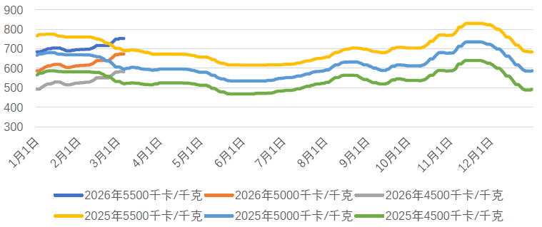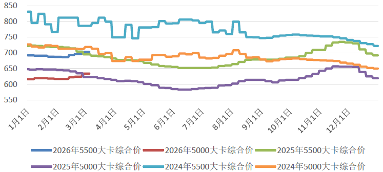 进口煤市场方面,本周市场呈现“外部成本飙升与内部需求冻结下的深度倒挂”特征。市场核心矛盾是国际供应扰动推高的到岸成本,与国内偏弱的内需及价格承受力之间的严重不匹配。受印尼斋月前本国需求增加、资源供应阶段性收紧影响,矿方捂货惜售,报价持续走强;同时,中东地缘冲突升级导致国际原油价格上涨,大幅抬升了国际海运成本;两者叠加,推动进口煤到岸成本急剧攀升,与内贸煤形成价格倒挂,性价比优势完全消失。尽管外盘报价坚挺,中国终端用户(特别是电厂)采购积极性骤降,普遍持观望态度或转向内贸煤与长协煤,市场实际成交极为冷清。贸易商因无法锁定下游需求且操作风险巨大,市场参与度极低,进口通道近乎冻结。印尼煤价持续走高,澳煤成本相对优势显现,对中国及东南亚发运量显著上升。在印尼煤受限、澳煤分流的格局下,俄煤凭借地缘与陆运优势,正积极填补韩国、东南亚及欧洲(尤其是规避红海风险的欧洲国家)的市场缺口,成为全球煤炭贸易再平衡的关键变量。整体而言,进口市场因外部成本非正常飙升与国内供需转向宽松的基本面完全背离而陷入“冻结”。这种深度倒挂虽在情绪上对国内港口煤价形成边际支撑,但因实际需求被完全抑制,无法有效转化为对国内市场的实际补充。