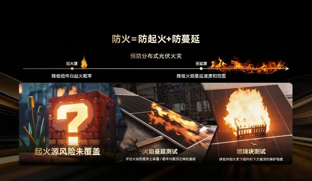 解决了组件自身起火,另一个关键问题是:如果别处起火,组件是否会成为“助燃物”?