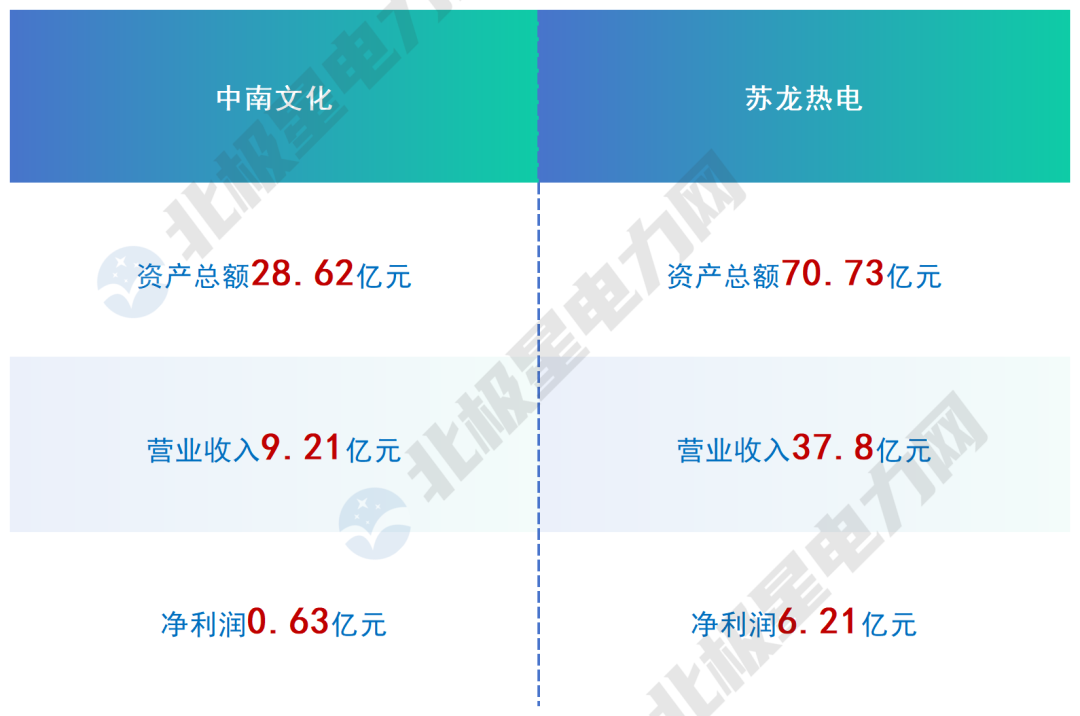 截至2024年底,中南文化资产总额为28.62亿元,2024年实现营业收入9.21亿元、净利润0.63亿元;同期,苏龙热电资产总额达70.73亿元,营业收入37.8亿元,净利润6.21亿元。